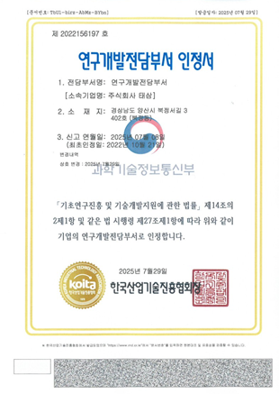 • Address : 402, 3 Bukjeongseo-gil, Yangsan-si, Gyeongsangnam-do (Bukjeong-dong, Cheondo Building)