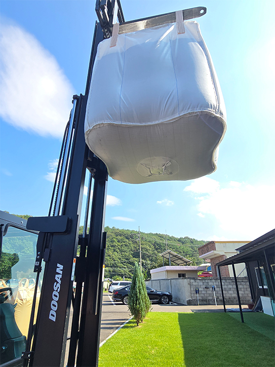 클로버백은 네개의 기둥으로 인해 직립상태를 유지하며, 다단적재 시 안정성 확보 가능.